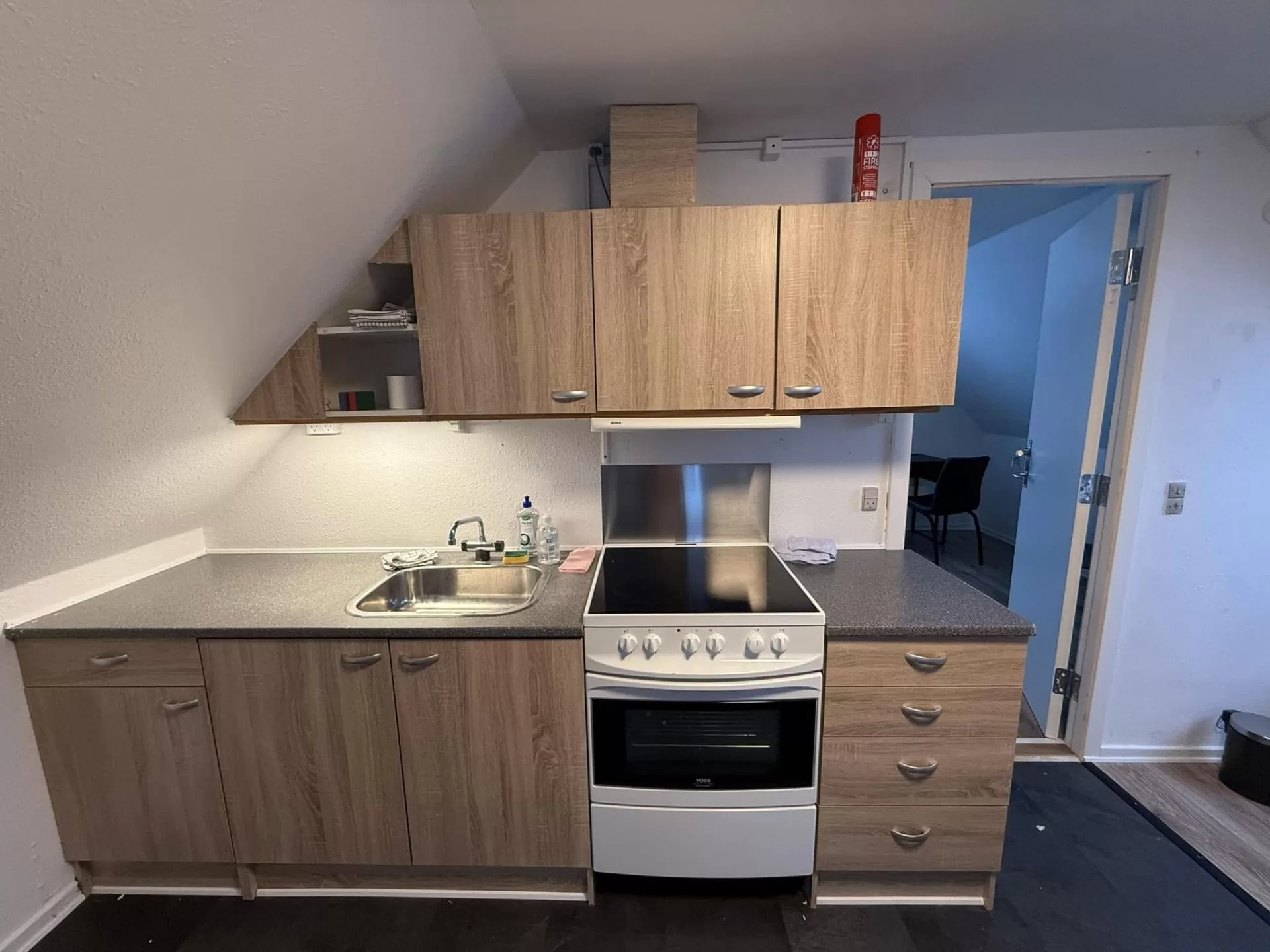 On the ground floor, you’ll find three single rooms and two double rooms, all sharing a kitchen and bathroom. The upper floor features two double rooms with a shared kitchen and toilet.