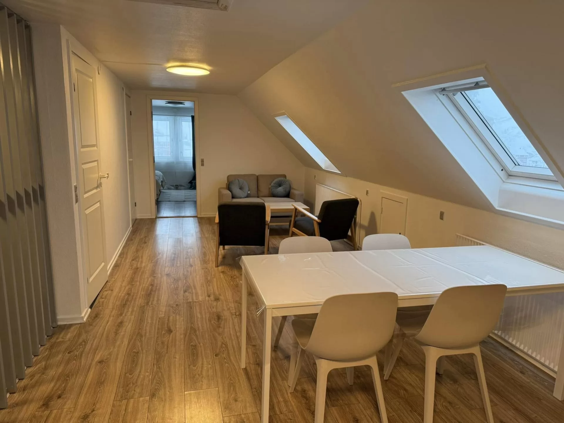 Each floor has a shared living area, offering both comfort and convenience. Free Wi-Fi is available throughout the house, along with access to a washing machine and tumble dryer.