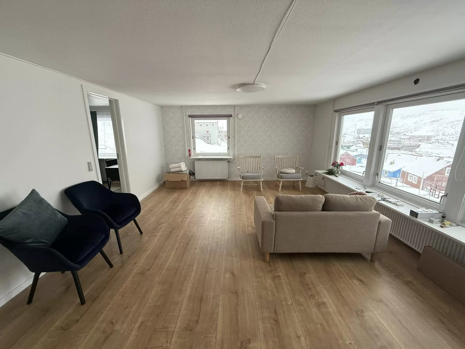 Arctic Aurora is a two-floor accommodation offering cozy rooms with beautiful views. Each room is furnished with a TV, a desk and chair, and a comfortable armchair – perfect for both relaxation and work.